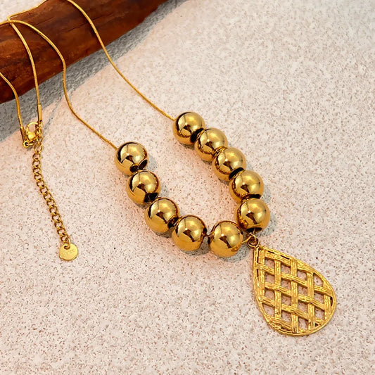 Collar Esferas Doradas con Dije Gota Calada en Acero Inoxidable