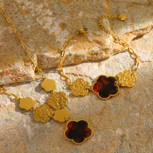 Set Trébol Dorado – Collar y Pulsera con Flores de Cuatro Pétalos